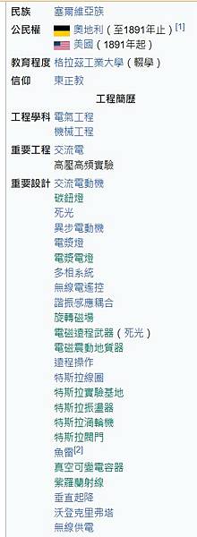 尼古拉·特斯拉(塞爾維亞語:Никола Тесла[3];英語:Nikola Tesla;1856年7月10日—1943年1月7日),塞爾維亞裔美國人[4][5][6] 、機械工程師、實驗物理學家,被認為是電力商業化的重要推動者,並因主要設計現代交流電供電系統而最為人知。[7]特斯拉在電磁場領域有著多項革命性的發明。他的多項相關的專利以及電磁學的理論研究工作是現代的無線通信和無線電的基石。