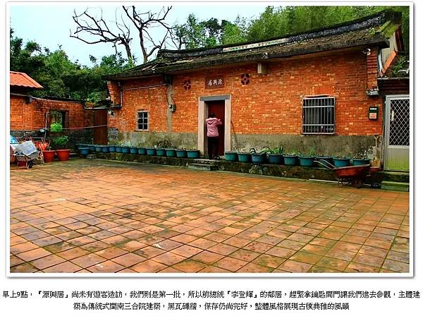 三芝區埔頭坑有一座傳統磚瓦牆建築,外灣樸實典雅,名叫「源興居」。 「源興居」是臺灣第一位民選總統李登輝的祖厝。李家人祖先原本是福建閩西永定的客家人,渡海來臺之後,到了李登輝的曾祖父李乾蔥才遷居三芝。「源興居」所處的位置地名是叫「王厝營」,此地為原為王姓拓墾之地,是王姓的聚落,後來王家土地轉賣給李登輝曾祖父李乾蔥,開始興建「源興居」,一直到了李登輝祖父李財生這一代「源興居」才完工落成。 ...【蕭文杰專欄】李登輝故居無法進行「歷史建築」文資審議是新北市文化局錯誤作為 | 典藏ARTouch.com https://bit.ly/49AsJUz