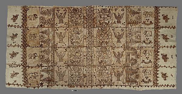 1970 年代出產的東加王國樹皮衣,由構樹樹皮製成,花紋內容包含東加社會重視的動物、植物以及國徽。圖│The British Museum (CC BY-NC-SA 4.0)