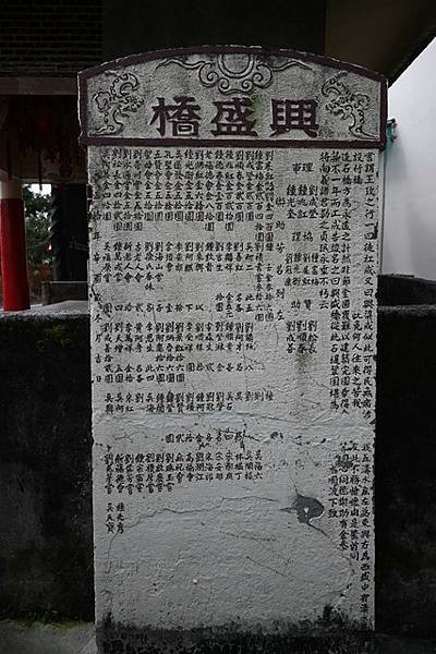 西元1921年(大正10年)興盛橋碑記,碑額題刻「興盛橋」三字及蝙蝠、彤雲湧日紋飾;係興盛橋建記事及捐題碑記,敘述興盛橋修建源由,並詳列捐款者姓名與金額。興盛橋位於今屏東縣萬巒鄉五溝水,境內水流溝渠匯聚,因此築造多座橋梁以利交通。