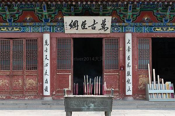 拾級而上,迎面就是文王廟的主殿堂,該大殿系嘉靖二十一年(1542年)重建。大殿前簷懸掛一副門匾,上書「萬古臣綱」四個大字。大殿中門兩側掛有一副楹聯,上聯是“七年臣節敬能止”,下聯是“萬古天心文在茲”。步入大殿,抬頭可見文王塑像,相貌魁奇,神態肅穆,聖哲的內心世界溢於形表。