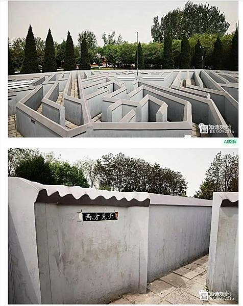 0圖十為八卦陣迷宮,迷宮牆壁高約1.5米,其壁上刻有「回頭是岸」「乘勝追擊」等成語,對走迷宮之人抑或是提示,抑或是迷惑。八個陣勢都設有瞭望台,可以站在瞭望台考慮下一步該如何走。