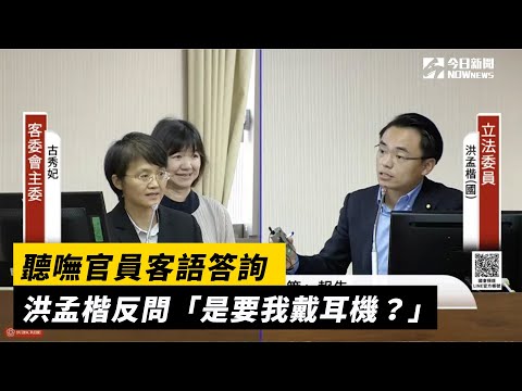 立法院內政委員會9日進行「修正台灣台語政策」報告,國⺠黨立委洪孟楷質詢時,面對客委會主委古秀妃以客語答詢,洪孟楷隨即稱,「我其實是聽不懂客語,你是要我戴耳機?」並拿取耳機後放下,國民黨籍召委徐欣瑩要求古秀妃,請用國語、華語。