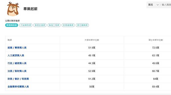 2024管理與財經人員最新畢業起薪-提供大學生薪水收入及碩士待遇查詢-104薪資情報