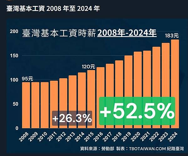 臺灣基本工資 2008 年至 2024 年 → TBO Taiwan | 紀路臺灣