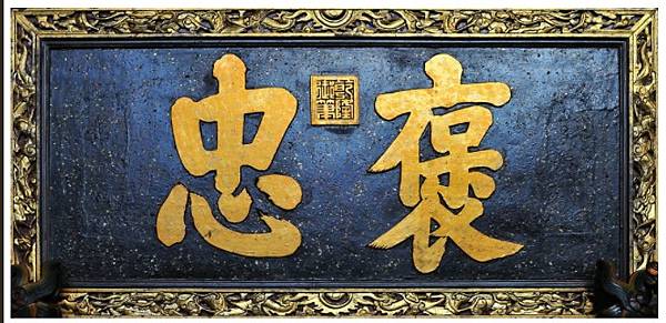 獅潭鄉新店村義民廟開發獅潭史蹟館--毛筆親書「褒忠」並蓋「乾隆御筆」紅戳章