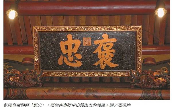 乾隆皇帝特別頒給泉籍義民「褒忠」、漳籍義民「思義」、平埔族義民「效順」等匾額。在朝廷官員抵達淡水紅毛港時接旨及匾額。 @ 姜朝鳳宗族 :: 痞客邦 ::