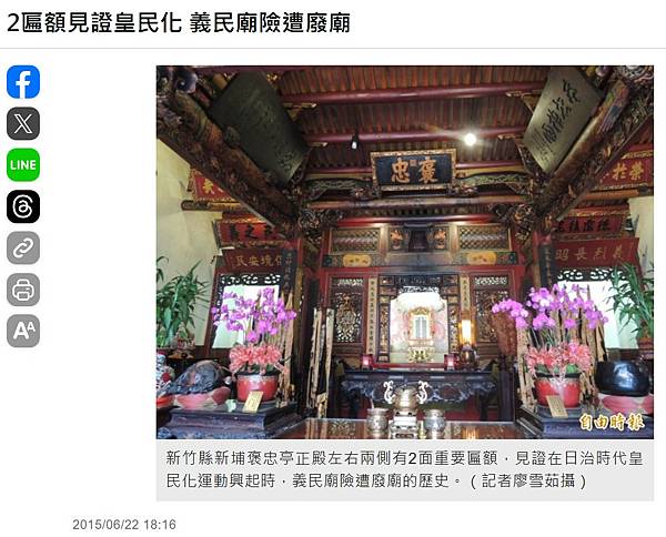 2匾額見證皇民化 義民廟險遭廢廟 - 社會 - 自由時報電子報
