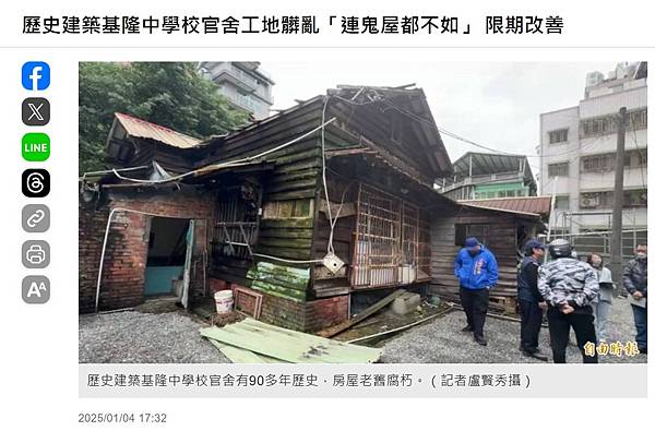 歷史建築基隆中學校官舍髒亂 市府︰限期改善 - 基隆市 - 自由時報電子報 https://bit.ly/4gFVIck
