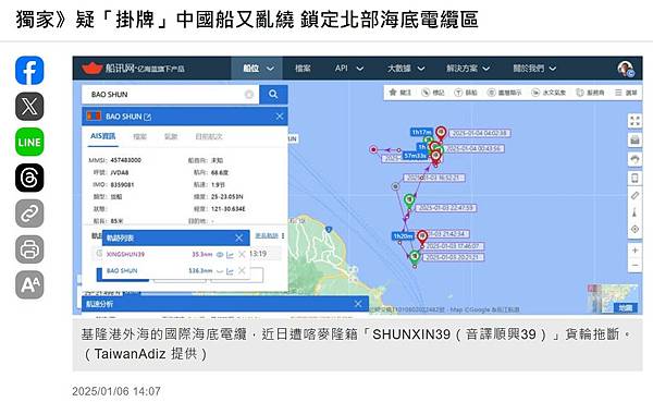 獨家》「順興39」拖斷海纜去年雙十起現詭跡 「寶順」今天還在亂! - 政治 - 自由時報電子報 https://bit.ly/4fXawlD