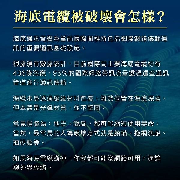 海底電纜是世界上最重要的傳輸方式之一,尤其台灣這樣的島嶼國家。