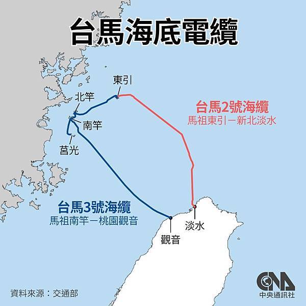 據了解,目前台馬間分別是靠「台馬2號電纜」,連接東引到淡水;「台馬3號電纜」,連接南竿到桃園觀音。