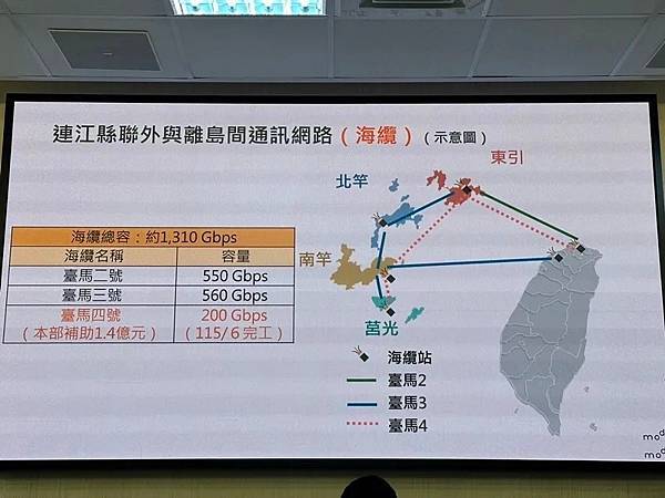 既有預算中,普及偏鄉寬計劃,微波容量到12.6GB,在數位部韌性計劃中,中華電信也在建置台馬4號電纜,不過舖設海纜需要時間,預計在115年6月完工。