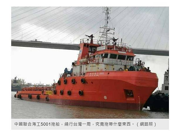 中國聯合海工5001拖船,繞行台灣一周,究竟拖帶什麼東西。(網路照)