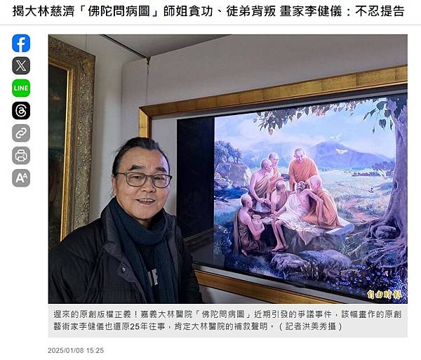 相關新聞:揭大林慈濟「佛陀問病圖」師姐貪功、徒弟背叛 畫家李健儀:不忍提告