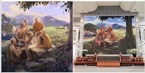 並於1999年9月16日與慈濟志工完成該幅『佛陀問病圖』之『畫作及著作財產權讓與契約』簽訂。接續依李教授原創完成『佛陀問病圖』之壁畫製作。