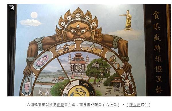 六道輪迴圖就沒把佛陀當主角,而是畫成配角(右上角) 。(陳立德提供)