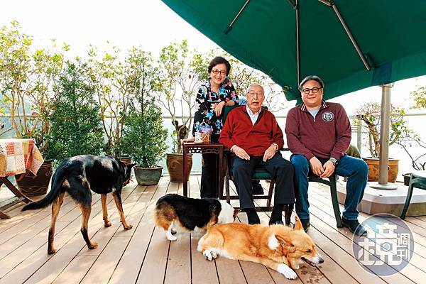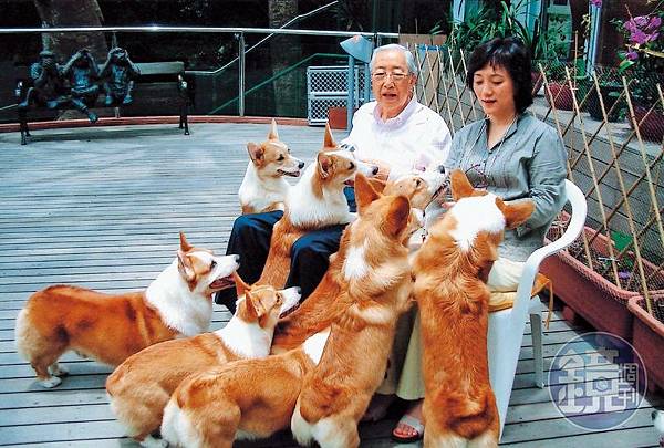 榮鴻慶和太太榮周淑霞愛狗,出門遛狗時被鄰居說是八仙。(上海商銀提供)