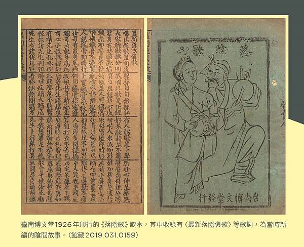 這類唱片,標題常列為「笑話」,帶點底層揭密、社會諷刺的趣味性。在同時代的歌本裡,也常有譏笑「觀落陰」的言詞,說是迷信、不足取的行為。不論迷信也好,當笑話看也罷,都在我們的眼前展開一個地府圖象,更表現臺灣底層社會親暱濃厚的親情。