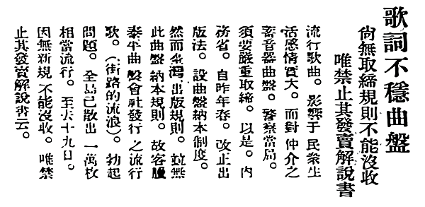 為什麼要禁這首歌呢?根據當時報紙《臺灣日日新報》的紀錄,這首歌傳遞頹廢思想,充滿虛無主義要素,後來就以「安寧秩序」為由查禁了。