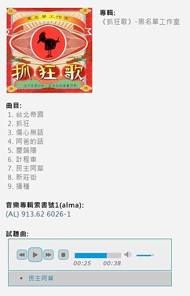 〈民主阿草〉雖然被限制只能在校園演唱會等方式傳播,卻反倒使它成了當時炙手可熱的專輯,當中收錄的〈台北帝國〉、〈民主阿草〉和〈計程車〉,曲風揉合雷鬼、饒舌,這些都是用可以包容最多文字量的方式來講述臺灣社會現象。陳明章說:「從〈民主阿草〉的歌詞我們可以看出,『黑名單』的歌沒那麼矯飾,當然也沒有國語歌曲那麼浪漫……但我不希望它變成民俗,那個意義不同。」另一位,是許多成功的流行音樂專輯製作人,林暐哲,在《抓狂歌》的歌詞本上有著這樣的介紹: