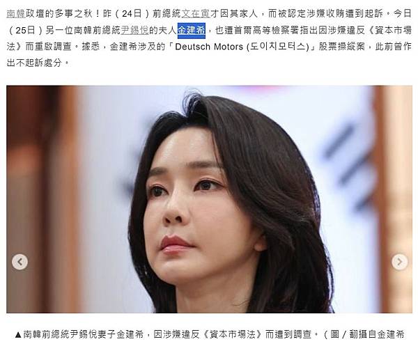 日本電視台(NNN)報導,據悉一名支持者承認,他曾以贈送價值約新台幣120萬元高級項鍊為交換條件,要求金建希任用他的親屬為政府高官。南韓媒體報導稱,這一點成為逮捕金建希的關鍵因素。她過去曾在國際會議場合佩戴這條高級品牌項鍊。而且該支持者的親屬確實被任命為政府高官,特別檢察官預計將對詳細經過展開調查。https://tinyurl.com/255ak4ed