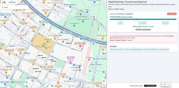 如果點選crowded,系統會顯示:15895人。(每平方公尺有兩人計)