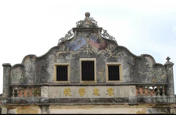 金水學校由水頭鄉僑集資於1932年興建,建築本體面積達631平方公尺,仿傳統書院採「回」字型的平面格局,均為一層樓高,是俗稱番仔厝的類型,正面採中西合璧的山牆裝飾,有精美的雕刻及花草、天使等泥塑,牌樓上以英文字母A作為裝飾,呈現洋樓特有的裝飾主題。