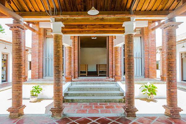 由大門進入為一前廳空間,左右兩側為辦公室,向前可經過水廊進入中央講堂,講堂亦設有一前廊。