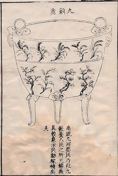 嘉靖年間問世的這套《大禹九鼎圖》,其製圖年代已無從可考。其中很多地理信息與《尚書·禹貢》的文字相仿。《禹貢》著書時間有周初、戰國、漢初幾說。所以《大禹九鼎圖》的原始古圖,可推測為漢代至明初之間的地圖作品。無論如何,這套《大禹九鼎圖》對於理解九鼎形制,《九鼎圖》的圖像、歷史背景、地理信息等,都有重要意義。