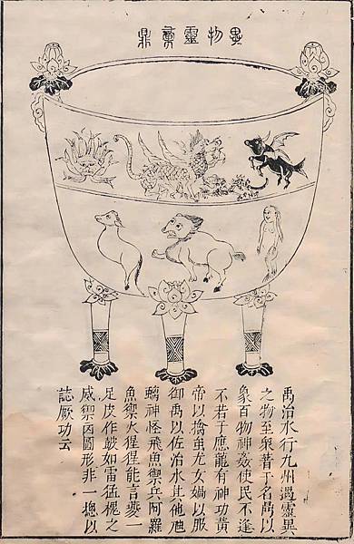 《九鼎圖》以具體形象的物象作為地圖內容的表達,反映出處於萌芽階段地圖的特點。《九鼎圖》上的神人鬼怪、奇獸異禽等內容,體現了先民對自然地理環境的認識。《九鼎圖》不僅標誌著先秦時代地理思想、輿圖製作飛躍性的進步,也對千百年來中國輿圖的發展具有深遠 https://www.facebook.com/share/p/14J1vAqhGB/