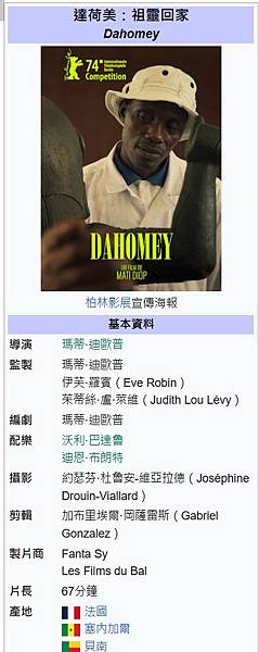 2025年1月17日全台即將上映的《達荷美:祖靈回家》,正是拍攝來自達荷美王國(Dahomey)的26件皇家珍寶,從法國凱布朗利博物館回到原籍地貝南共和國(Republic of Benin)的歷程。然而,對於這些流落異邦超過百年的祖先遺物該如何處置及看待,引發貝南國內的熱烈討論。這部電影不僅奪下2024金熊獎,更挺進2025奧斯卡最佳影片及最佳紀錄片前15強。