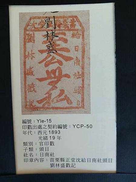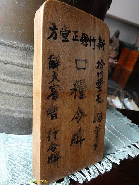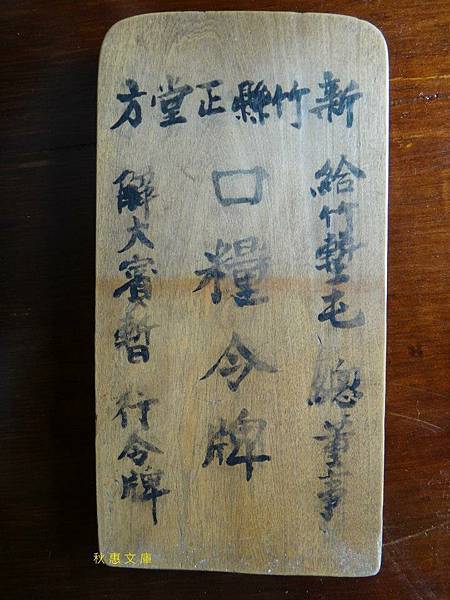 道卡斯族竹塹屯總董事解大賓的口糧令牌 光緒十一年﹙1885﹚曾留下一首「悲憤詩」