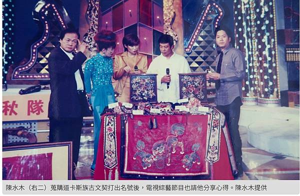 陳水木兼開「白牌計程車」,常問乘客有無舊傢俱要賣?那時古文物不受重視,不是送他,他以免車資回報,就是很便宜賣他。他發現廢棄舊傢俱的抽屜、櫃子內還藏著不少古文書或老照片,「番子契」也很多,道卡斯族、巴宰族與漢人簽的都有。他收購古文物打出名號後,不少人主動跟他連繫。