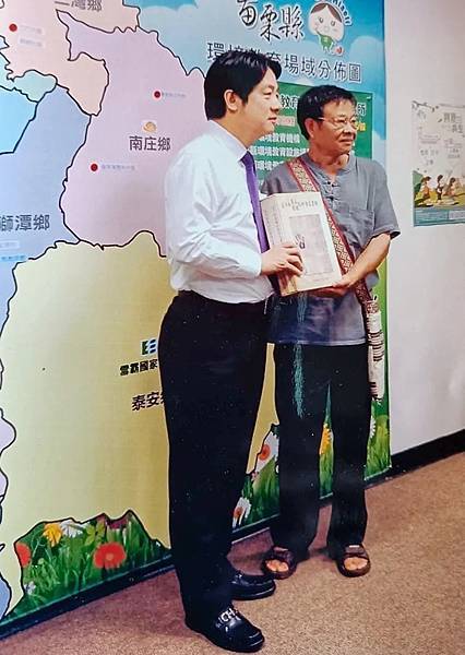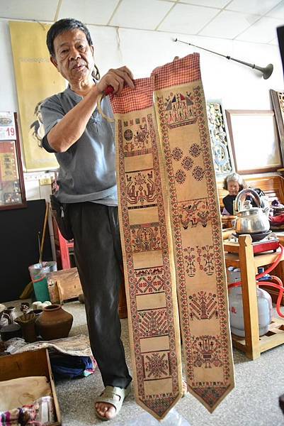本張照片是2020年由蔡金蓉在苗栗縣通霄所拍攝,照片人物為陳水木先生,照片主要介紹道卡斯劍帶,並說明如何從番仔契的收集到平埔的研究歷程。