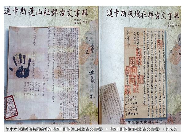陳水木與潘英海共同編著的《道卡斯族蓬山社群古文書輯》、《道卡斯族後壠社群古文書輯》。何來美攝