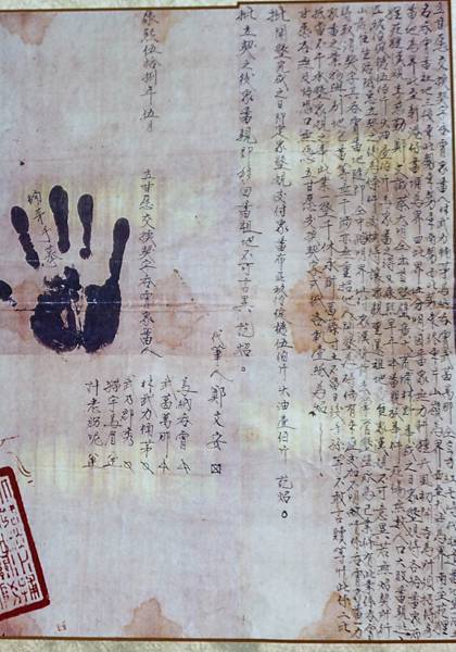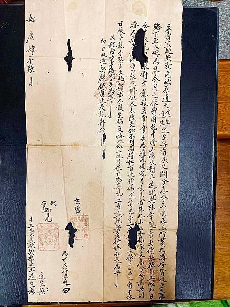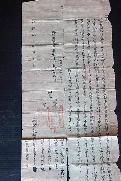 清嘉慶4年(1799)貓老尉兒子道生、連生、進生兄弟所簽的古文書契約。陳水木提供