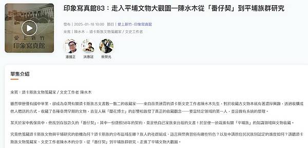 印象寫真館83:走入平埔文物大觀園—陳水木從「番仔契」到平埔族群研究|IC之音竹科廣播 FM97.5