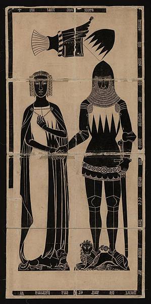 此外,寇斯特指出在男女腳邊的狗,並非傳統上理解的是婚姻忠誠的象徵,在中世紀到文藝復興的棺材上,會放置所謂的死像(effigy),這樣的雕像或是黃銅平雕中【圖3】,狗經常出現在女性死像的腳下托著主人的雙腳,或像《雙人肖像》中的那隻小狗那般陪伴主人。11