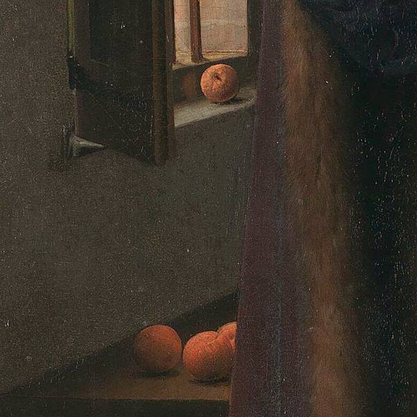 首先,讓我們消除通常的嫌疑犯:丈夫。他是無辜的。務實的是,作為這幅畫的贊助者,如果他這樣吹噓自己的罪行,那就太令人驚訝了!但最重要的是,範艾克小心翼翼地將橘子放在他身後。然而,在基督教傳統中,這種水果象徵著慷慨,也像徵著原罪面前的純真。橘子證明,無論發生什麼,丈夫都是無罪的!