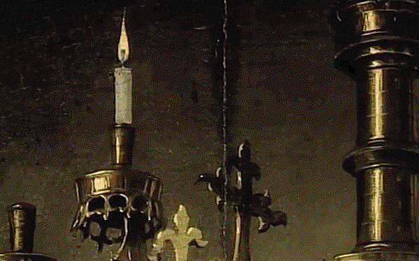 燭台是必不可少的:點燃的蠟燭在男人的一邊。相反,右側的蠟燭已經熄滅。剩下的只是一點冷蠟。