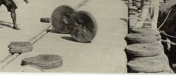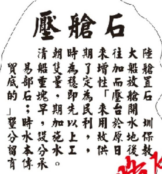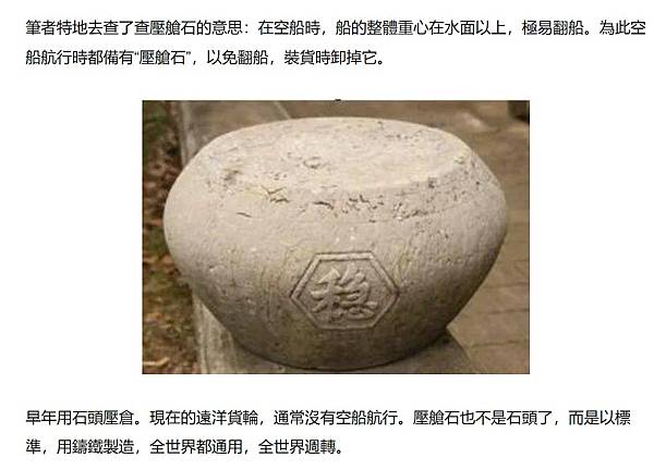 而當時臺灣的船載貨物去中國賣的時候,賣完就換載壓船石回來,以免船太輕而翻船。