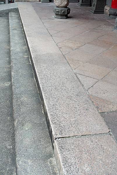 宜蘭市昭應宮位於宜蘭市中山路上,其位置為清治時期宜蘭城內貫通南北的要道,是宜蘭市民的信仰中心。依據噶瑪蘭廳志記載,1808(嘉慶13)年建廟,所祭祀主神為媽祖(天上聖母),2006(民國95)年被指定為宜蘭縣定古蹟。 在清治時期,來往於台灣及唐山(中國)之間的貨船,經過黑水溝(台灣海峽)來到台灣,為避免風浪過大、造成船身的傾斜,因此會購買唐山石,作為壓住船艙,穩定其重心之用,讓船隻的行駛更加安全,所以稱為「壓艙石」。而這些石材運至台灣之後,就成為造橋或舖路的最佳材料,品質較好的則會加以雕刻及磨光,當做建築材料使用。昭應宮興建時,來往交通以水運為主,唐山運來的石材經由水路,經由宜蘭河河運在西門碼頭一帶上岸,再以人力拖運至昭應宮施作。 在昭應宮的三川殿及正殿的台階上,都可以看到壓艙石的身影。三川殿台階上的壓艙石全長525公分,分成三段,中間的這一塊壓艙石,則是宜蘭縣廟宇中體積最大的壓艙石。宜蘭市昭應宮三川殿壓艙石|國家文化記憶庫 2.0 https://bit.ly/4jUXUij