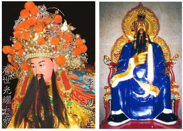 光耀大帝:金闕靈真官,丁卯。姓李名觀濤字少舟號道觀,生於商朝太丁丁卯年(公元前一一九四) 籍瀧西(陝西省南方)為當地豪族,少時力學,有先天道性,仕紂為上卿,從姜尚遊。