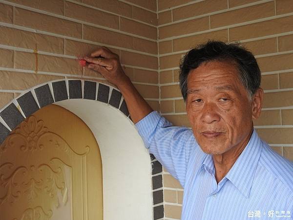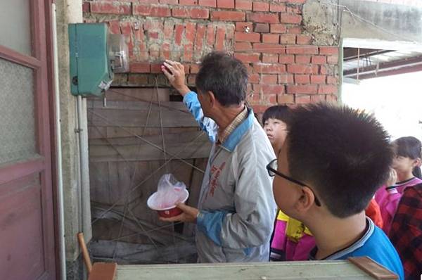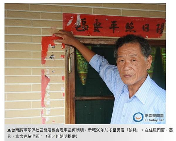▲台南將軍苓保社區發展協會理事長何朝明,示範50年前冬至民俗「餉耗」,在住屋門窗,器具,禽舍等粘湯圓。(圖/何朝明提供)
