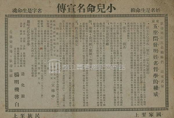 楊明機小兒命名宣傳廣告 三芝智成堂文武聖廟官方網站 楊明機小兒命名宣傳廣告 - 藏品資料 - 國立臺灣歷史博物館典藏網
