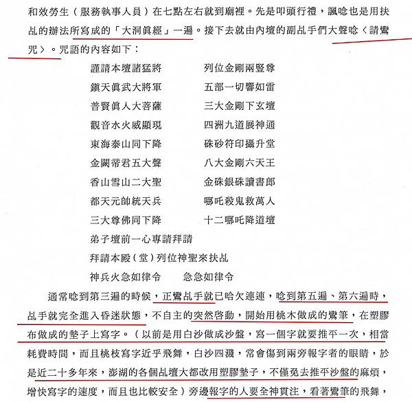 筆錄生者,靜神養氣,文思敏捷,不假思索,耳聞唱鸞聲音,正視紙簿,旁觀沙盤,一一詳記字字清楚,則飛鸞之功夫,始克傳真完成。