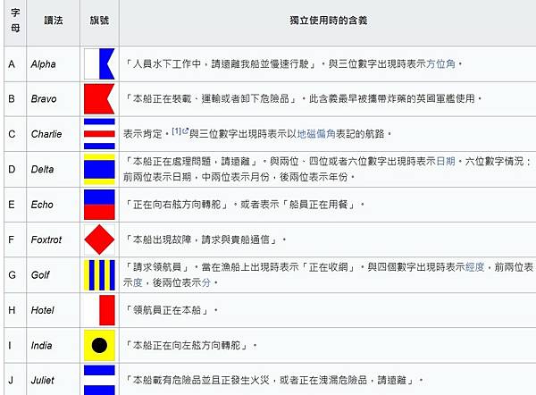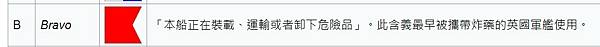 本船正在裝載、運輸或者卸下危險品」。此含義最早被攜帶炸藥的英國軍艦使用。 國際信號旗 - 維基百科,自由的百科全書