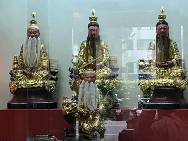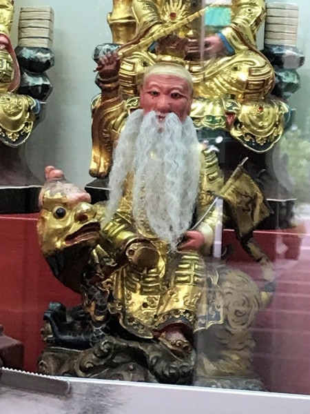 本堂也供奉關聖帝君、孚佑帝君、岳武穆王、司命真君、文昌帝君、醫神孫思邈真人等神祇。前方一組神像頗有宜蘭風味(圖2、5、6)。