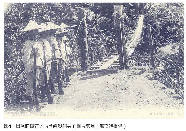 清末由於沿山地帶的隘防消失,造成許多已經開墾的土地再次荒蕪,日治初這些已開墾卻荒廢的土地,被稱為「生蕃奪卻地」,但事實上其土地原所屬權其實是原住民族。日治初因為沒有官設隘勇(圖4)的保護,造成許多地區的墾戶(墾號)與私隘又再度興起,不過墾戶數量、隘墾的規模與隘防的強度,都遠不及以往。加上初期官方忙於處理平地的「土匪」,對於山區原住民族也大致採取綏撫政策,此外也極力想恢復沿山的空間與族群秩序,因此補助清末原有的中路隘防。事實上這是當時從臺中通往埔里盆地的北側的入口線路,若一旦中斷官方便失去從北側進入埔里的要道,因此不得不加以維持道路暢通。此外,新北、新竹、苗栗等處都有私隘的情形。原住民族文獻 https://bit.ly/4jc8uR4